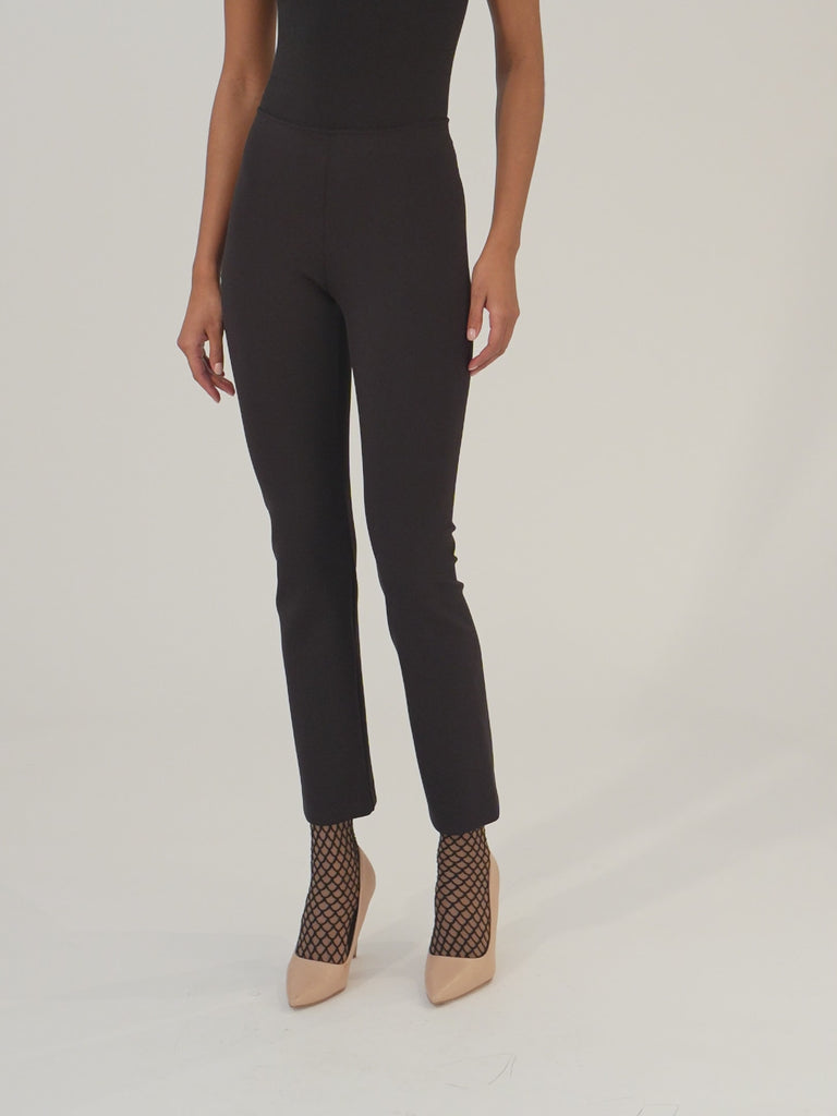 Elegant straight-leg cut / Slim fit / Technical-inspired stretchy scuba jersey fabric / Concealed elastic waistband for a sleek and sophisticated look